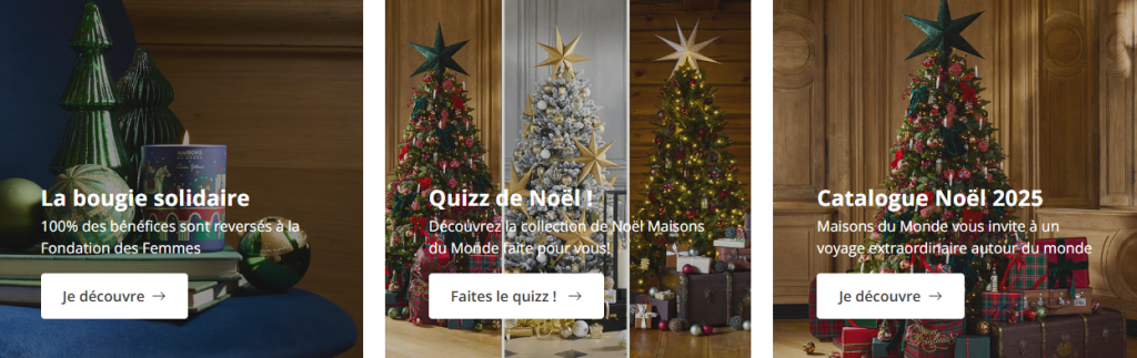 Sur le site de Maisons du Monde, l’offre est particulièrement riche et segmentée par “univers” décoratifs très distincts :